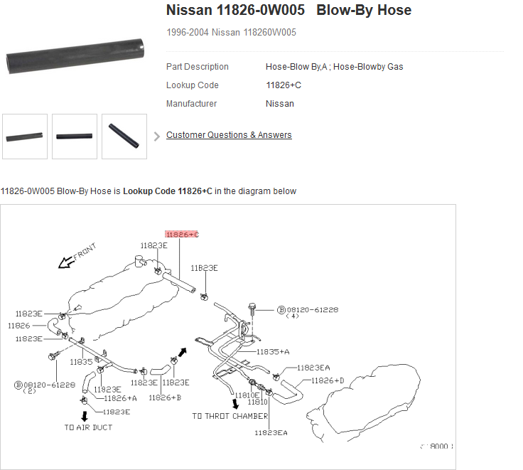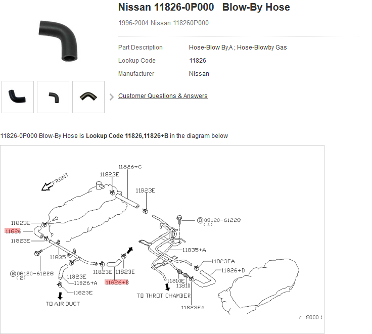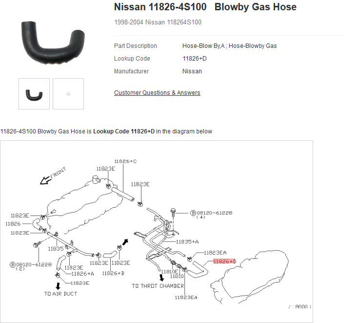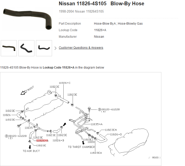 Part No.: 11826-4S105 (Breather Hose to Air Duct)