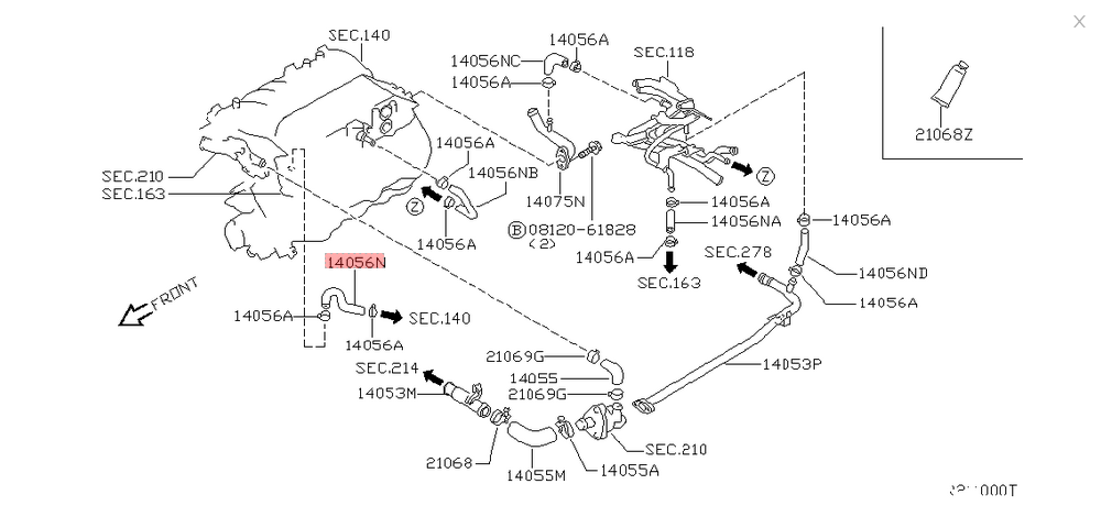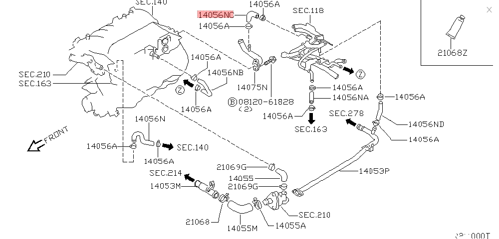 Part No.: 14056-4S103 (Rear 90 Degree)