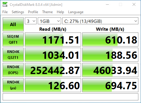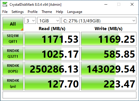 4x118GB, 1760/1050 MB/s, 410000/243000 IOPS, 1292 TBW, 2x ZFS Mirrors |