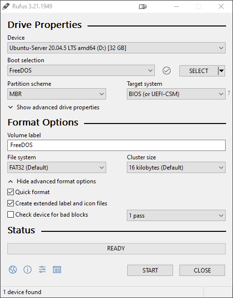 - Download Rufus. We'll rufus to create a freedos bootable USB later in this guide.