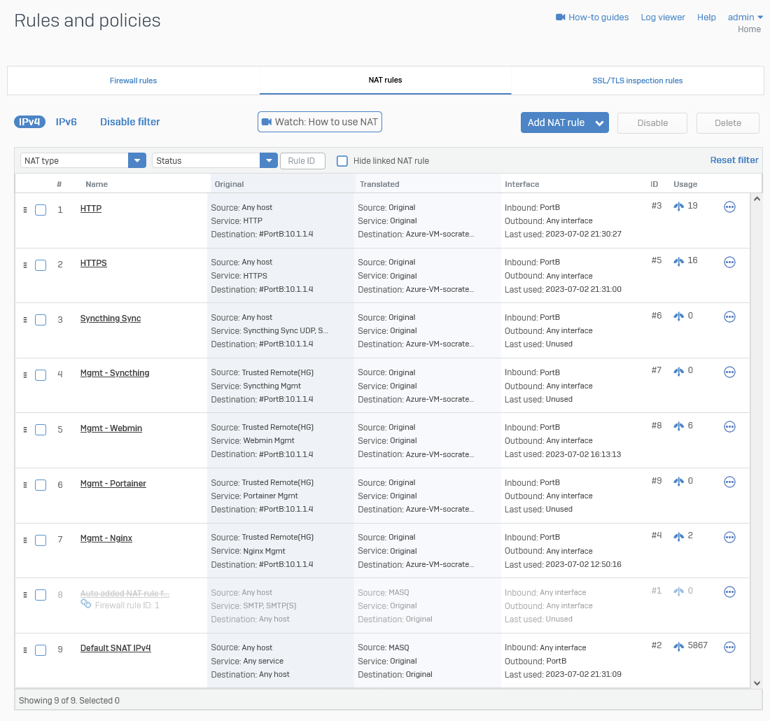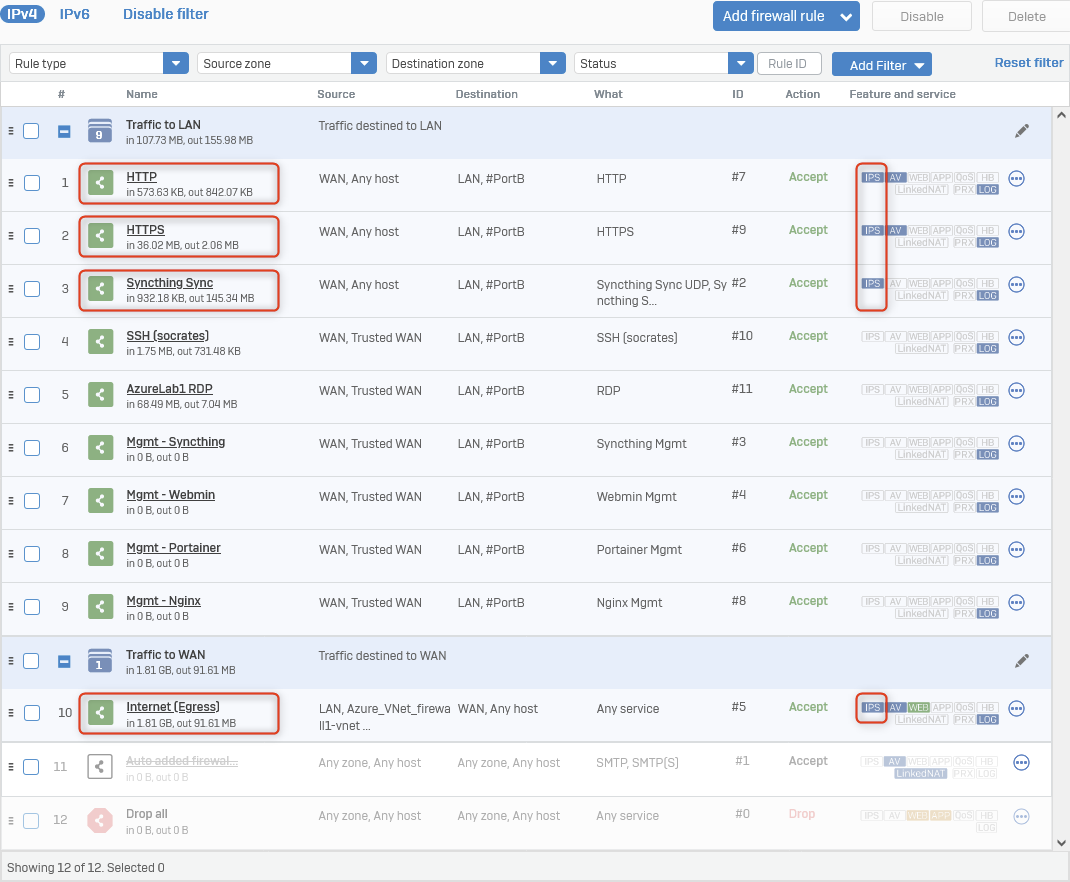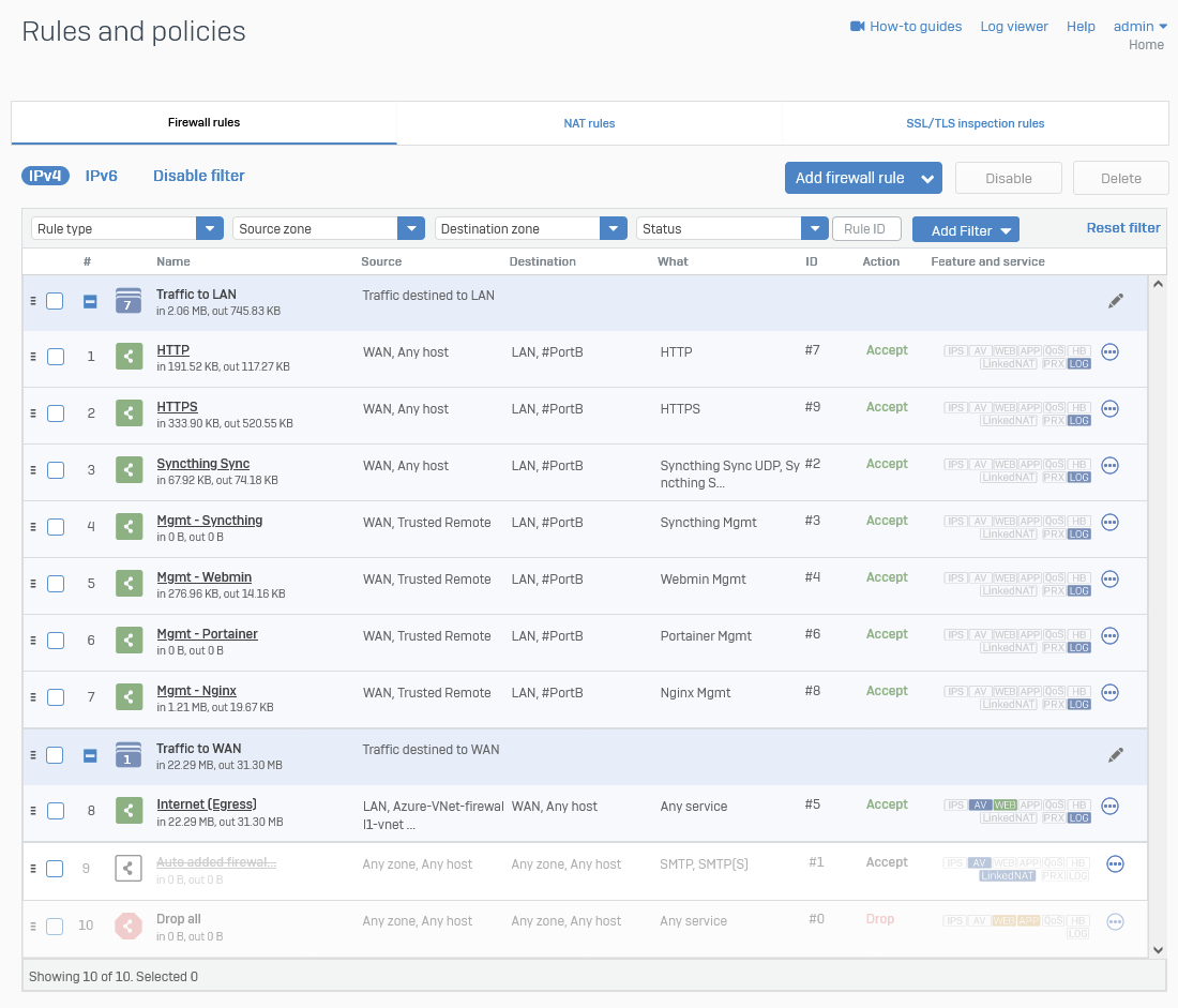The Traffic to LAN rules were created using the Server access assistant (DNAT) and then the Firewall and Nat rules were cleaned up.