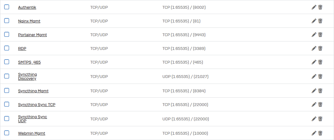 | Syncthing Mgmt | TCP/UDP | TCP |