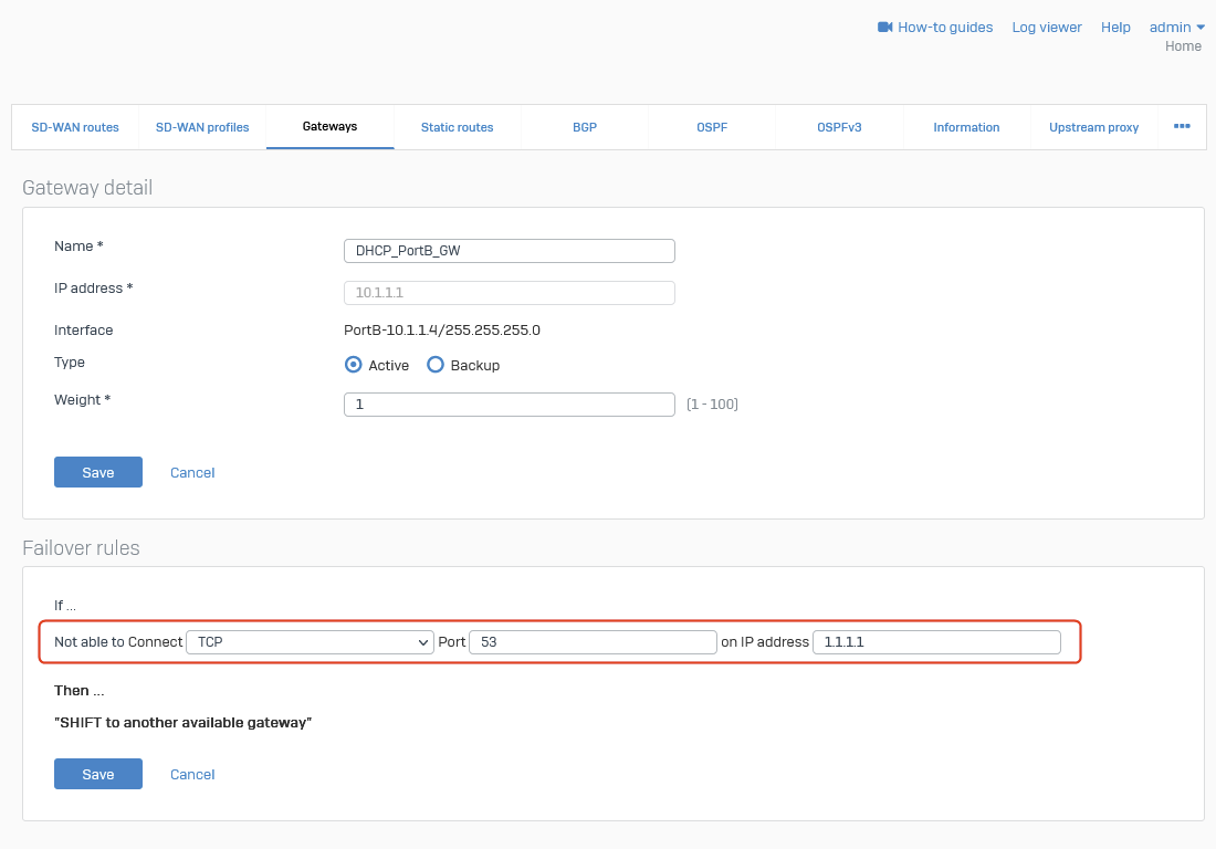 - Navigate to Routing ⮞ Gateways ⮞ Edit DHCP_PortB_GW.