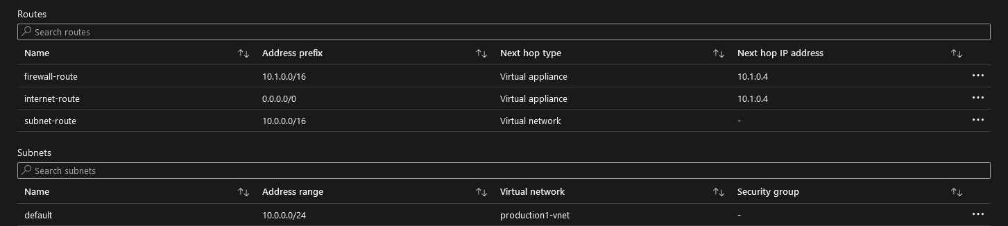 | Azure-VNetwork-Production1-VNet | IPv4 | IP subnet | 172.76.0.0 |