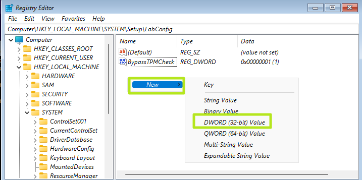 Bypass the Windows 11 installation checks by editing the registry during the Windows 11 setup process.