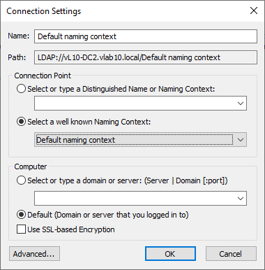 ADSIEDIT.MSCtool and connect toDefault Naming Context.