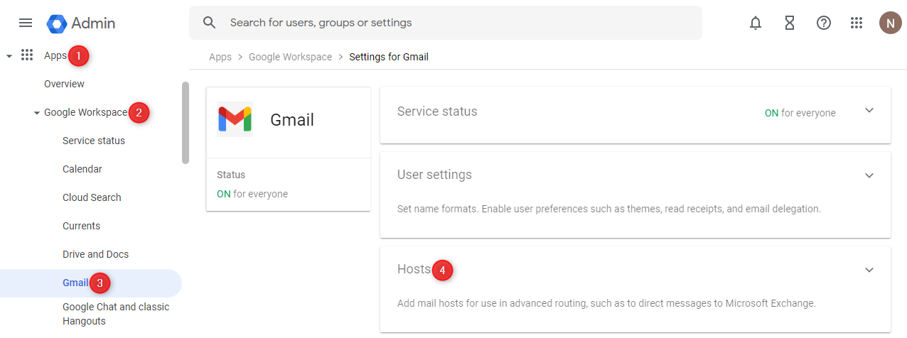 From the dashboard go to Apps > Google Workspace > Gmail.